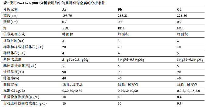 石墨炉原子吸收分光光度法测定食用油脂中的有毒痕量金属-PerkinElmer PinAAcle 900T
