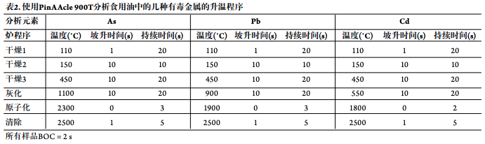 (表1)和石墨炉升温程序(表2)在下表中给出。90˚C