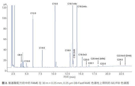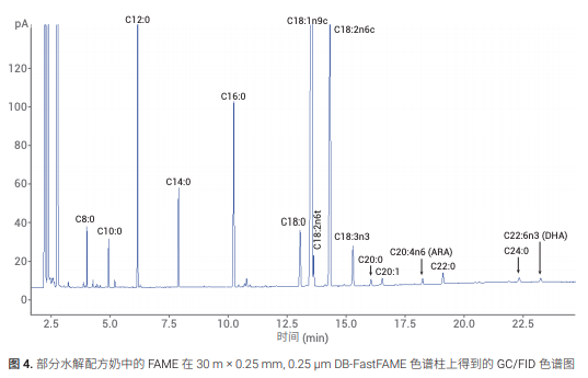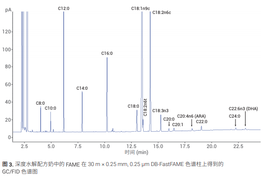 分析 37 种脂肪酸甲酯 (FAME) 混标和蛋白水解配方奶的实际样品。本应用简报介绍