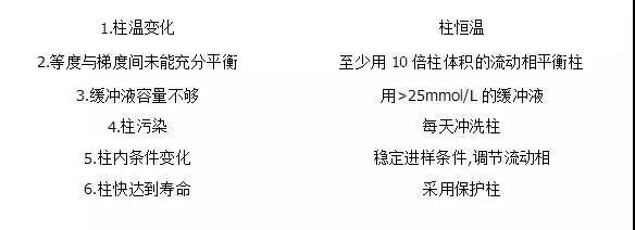 i)有些缓冲盐会渗入到键合相的深处,损害硅胶基体,导致色谱柱键合相流失,柱床变松,柱效下降;