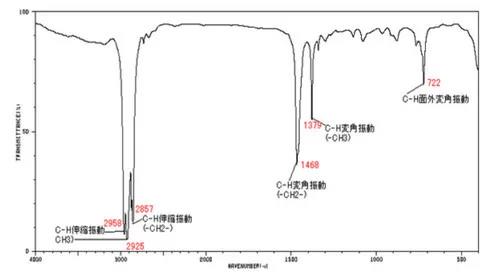 此图为Octane(辛烷)红外光谱图 ,纵坐标为透过率,横坐标为波长λ ( μm )或波数(cm-1)