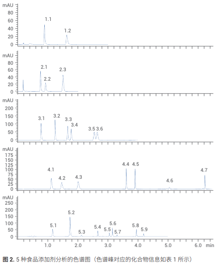 选择阀在一台液相色谱系统上用于多种食品添加剂的分析);