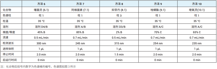 短柱 + 3 根长柱)。本文示例的 10 种方法使用了 3 根色谱柱,分