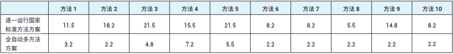 表 4. 采用逐一运行**标准方法方案与全自动多方法方案分别运行 10 种分析方法的所需时间(单位:h)